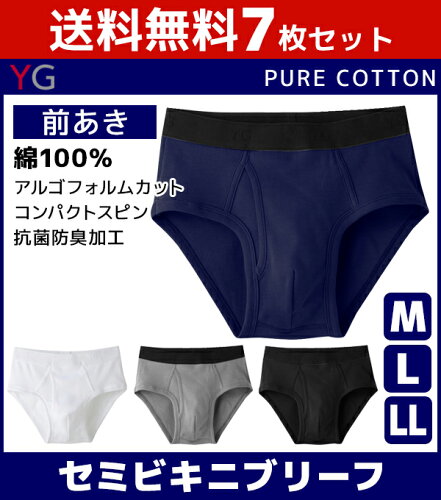 送料無料7枚セット YG ワイジー COTTON 綿100% セミビキニブリーフ 前あき Mサイズ Lサイズ LL グンゼ GUNZE パンツ| 黒 ブリーフ ショーツ 男性下着 メンズ下着 男性用 白 グンゼyg ビキニブリーフ メンズ下着 メンズ下着パンツ パンツ 男性用下着 メンズパンツ下着 前開き