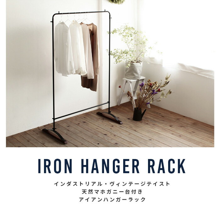 [ 送料無料 ][ 一年保証 ] ハンガーラック アイアン製 マット ブラック クール ヴィンテージ シンプル コンパクト ビンテージ インダストリアル コート掛け おしゃれ スリム ■天然マホガニー台付き アイアンハンガーラック ( 95×51×154 / 約4kg )