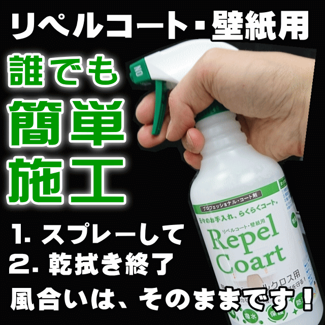 この商品は、誰でも簡単にプロ並の施工ができる【撥水コーティングスプレー「リペルコート」の壁紙・壁クロス用】。